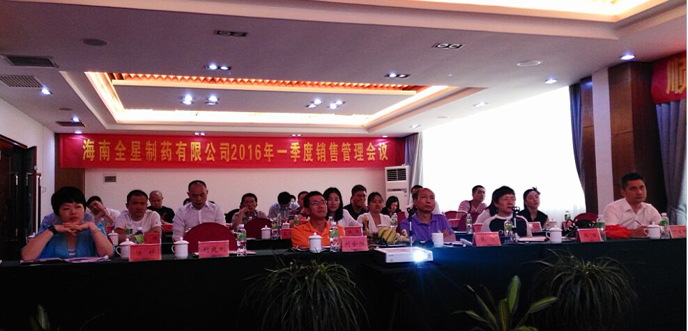 2016年4月14日-15日,海南全星制藥有限公司在烏蘭大酒店召開(kāi)2016年一季度銷(xiāo)售管理會(huì)議,公司董事長(zhǎng)兼總經(jīng)理劉全勝及各部門(mén)總監(jiān)、營(yíng)銷(xiāo)部全體成員及全國(guó)各省區(qū)經(jīng)理出席會(huì)議,會(huì)議由營(yíng)銷(xiāo)總監(jiān)丁月祥主持。